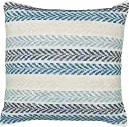 This pillow features a multicolored approach to the chevron trend, making it a perfect anchor for the "2-2-1" styling rule. To achieve a curated look, pair this bold geometric print with two larger solid-colored pillows in a coordinating blue and one smaller lumbar pillow in a subtle texture like linen. The multicolored design allows you to pull various shades from your existing rug or curtains to create a cohesive palette.