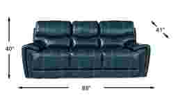 With its sleek transitional design and padded frame, the Italo reclining sofa is a trendy yet versatile place to get comfortable. Chaise recliners on each end extend for your comfort. Upholstered in luxurious top grain leather where the body touches, heavy coordinating stitching details complement the rich blue color. Flared arms are trimmed in copper nailheads for a polished accent. Top Grain Leather Where the Body Touches and Polyurethane Fabric sides and backs.