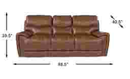 With its sleek transitional design and padded frame, the Italo reclining sofa is a trendy yet versatile place to get comfortable. Chaise recliners on each end extend for your comfort. Upholstered in luxurious top grain leather where the body touches, heavy coordinating stitching details complement the rich brown color. Flared arms are trimmed in copper nailheads for a polished accent. Top Grain Leather Where the Body Touches and Polyurethane Fabric sides and backs.