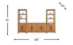 The sleek allure and refined charm of the Ithaca entertainment console transforms your living space into a stylish hub of cinematic luxury. Oak veneers in a natural finish add a sublime polish to this 66-inch transitional accent, with metal bar pull hardware in a black finish to even the look out. Internally, adjustable shelving supports your organization goals with room for books, streaming devices and more. A matching pier for each end of the piece maximizes your decorating potential with room for accents, decor and more.