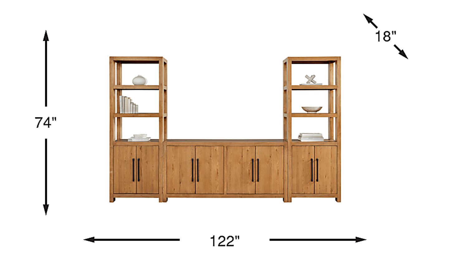 This 3-piece set is designed for maximum organizational flexibility, offering 10 shelves in total. The central 66-inch console features adjustable internal shelving tucked behind flat-panel doors, which is perfect for concealing gaming consoles, streaming devices, and cable boxes. The two matching side piers provide open shelving, allowing you to showcase decorative accents, books, or curated collections to personalize your space.