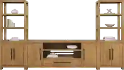 This 3-piece set has a total width of 136 inches and a height of 74 inches. Because it consists of three separate pieces—a central console and two flanking piers—it offers some flexibility during installation, but you should ensure you have a continuous wall space of at least 11.5 to 12 feet to accommodate the full arrangement comfortably without it feeling crowded against corners or doorways.