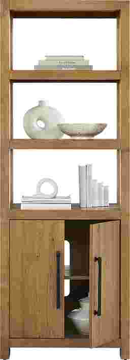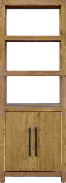 The sleek allure and refined charm of the Ithaca entertainment collection transform your living space into a stylish hub. This transitionally styled pier is crafted with oak veneers in a natural finish that adds a sublime final polish and impeccable look. Three open top shelves maximize your decorating potential with room for accents, décor and more. The bottom cabinet supports your organization goals with hidden storage while metal bar pulls in a black finish rounds off the piece with an industrial finish.