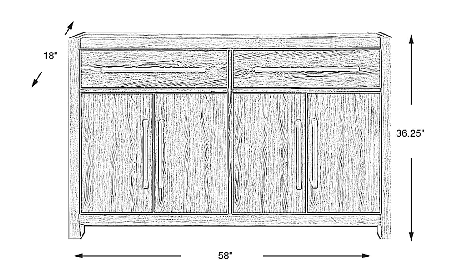 58.00"w x 18.00"d x 36.25"h