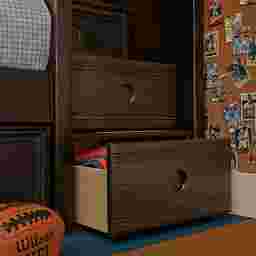 The Ivy League 2.0 step loft makes the most of the space in your child's bedroom. On one side you'll find a storage chest with five beveled drawers and brushed steel hardware and adjustable shelves fronted by a door. The opposite side has steps that lead to a top bunk. Each step has skid resistant textured strips and built-in storage drawers. The twin bottom bed is on casters so it can be moved easily. Durable construction is achieved with wood solids and veneers and a beautiful walnut finish. Mattresses and foundations (if required) sold separately. Bunkie boards required.