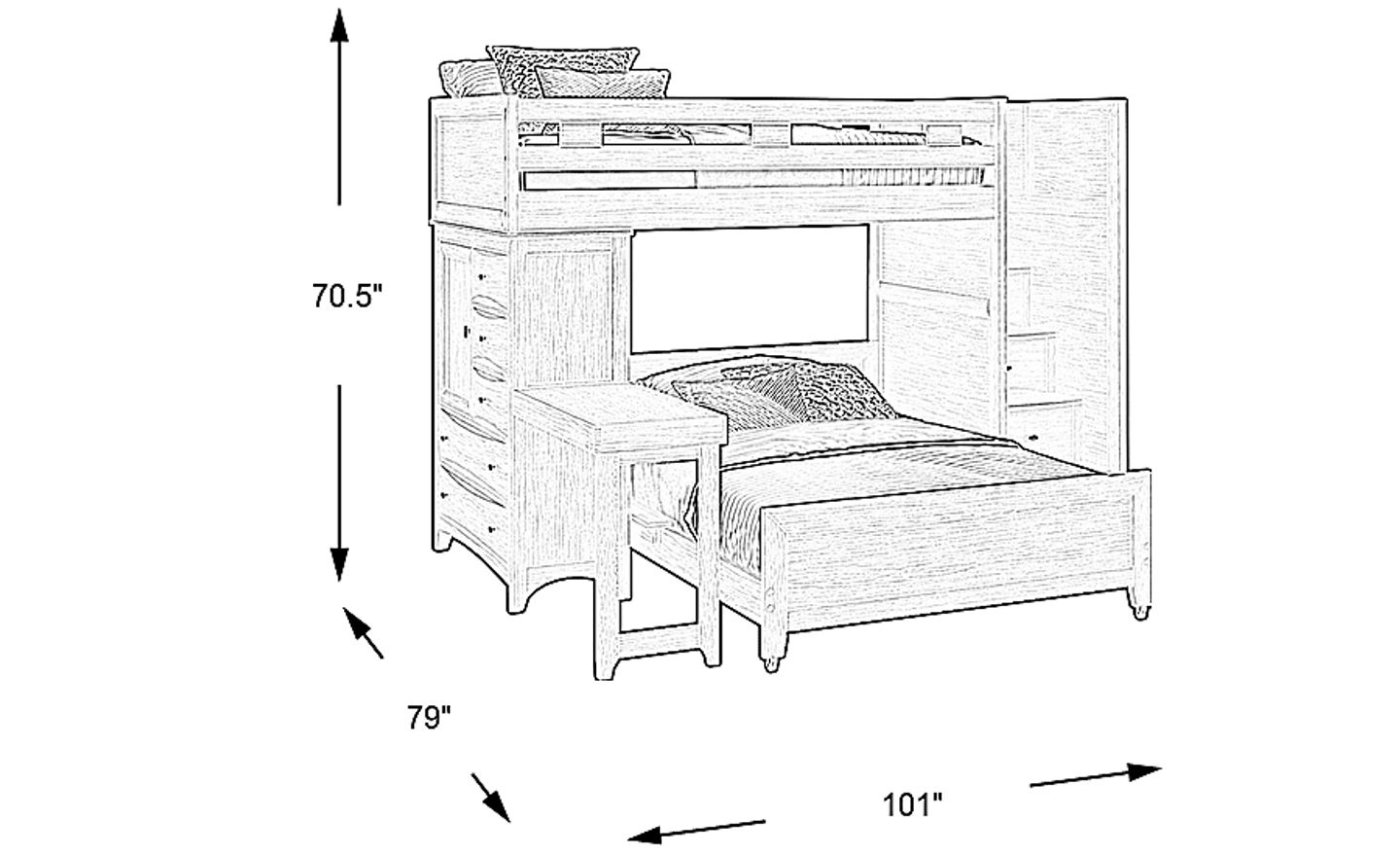 Smart, space saving design gives the Ivy League twin over full step loft great appeal. You'll love the combined value of having a built-in chest with beveled drawers and brushed nickel hardware, as well as a student desk attachment that can be easily attached that features storage drawers for additional organization. For safety, each step has skid resistant textured strips. Quality constructed of poplar solids with a rich walnut finish, this is a timeless choice. The full bed at the bottom is on casters, so it can be moved easily. Mattress and foundation (if required) sold separately. Bunkie board required.