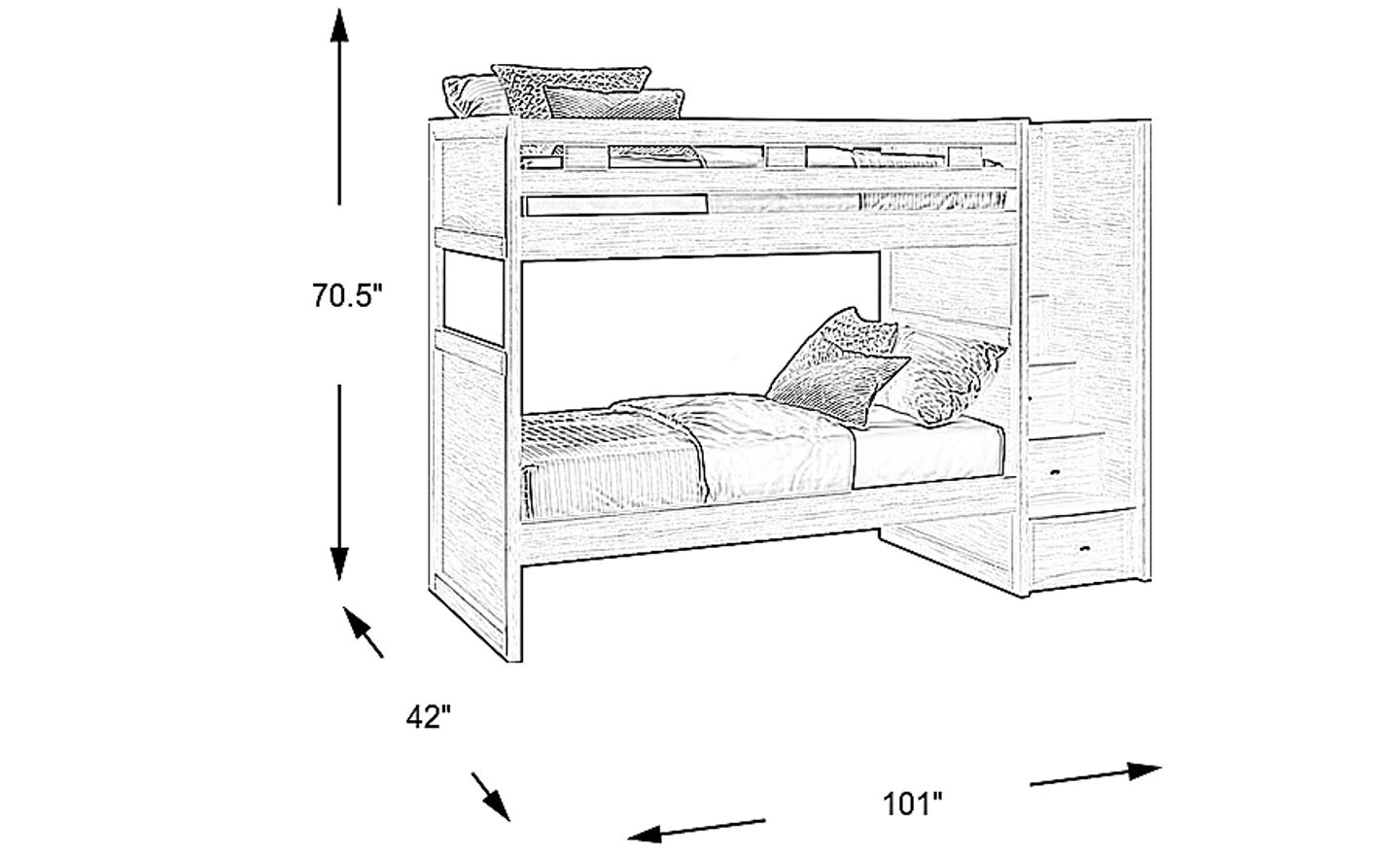 With an overall height of 70.5 inches, this bed is well-suited for rooms with standard 8-foot (96-inch) ceilings, leaving ample clearance for a child to sit up safely in the top bunk. When planning your room layout, keep in mind the generous 101-inch length; while the steps provide significant safety and storage benefits, they do require a longer wall space than a traditional ladder-only bunk bed.