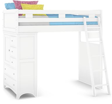 Smart, space saving design gives the Ivy League twin step loft great appeal. You'll love the combined value of having a built-in chest with beveled drawers and brushed nickel hardware. For safety, each step has skid resistant textured strips. Quality constructed and showcasing a fresh white finish, this is a timeless choice. Mattress and foundation (if required) sold separately. Bunkie board required.
