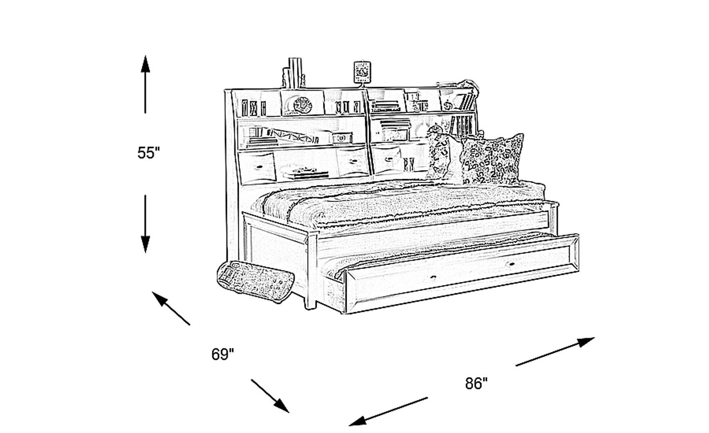 Offering tons of storage, this Ivy League daybed is a savvy space saver. It features double bookshelves with sliding doors and open cubbies for books, mementos and more. The bed is quality crafted of wood solids and veneers with a rich chocolate cherry finish. Plus, be ready for sleepovers in a snap with the trundle drawer - it's a great place to store an extra mattress (sold separately). Trundle sold separately. Mattress and foundation (if required) sold separately. Bed shown is twin size.