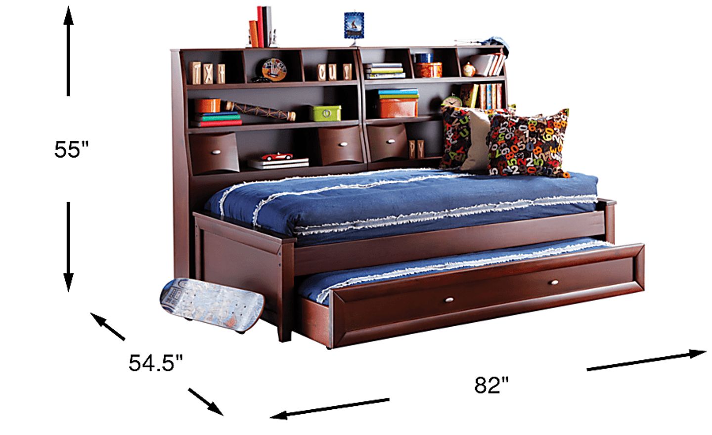 Offering tons of storage, this Ivy League daybed is a savvy space saver. It features double bookshelves with sliding doors and open cubbies for books, mementos and more. The bed is quality crafted of wood solids and veneers with a rich chocolate cherry finish. Plus, be ready for sleepovers in a snap with the trundle drawer - it's a great place to store an extra mattress (sold separately). Trundle sold separately. Mattress and foundation (if required) sold separately.