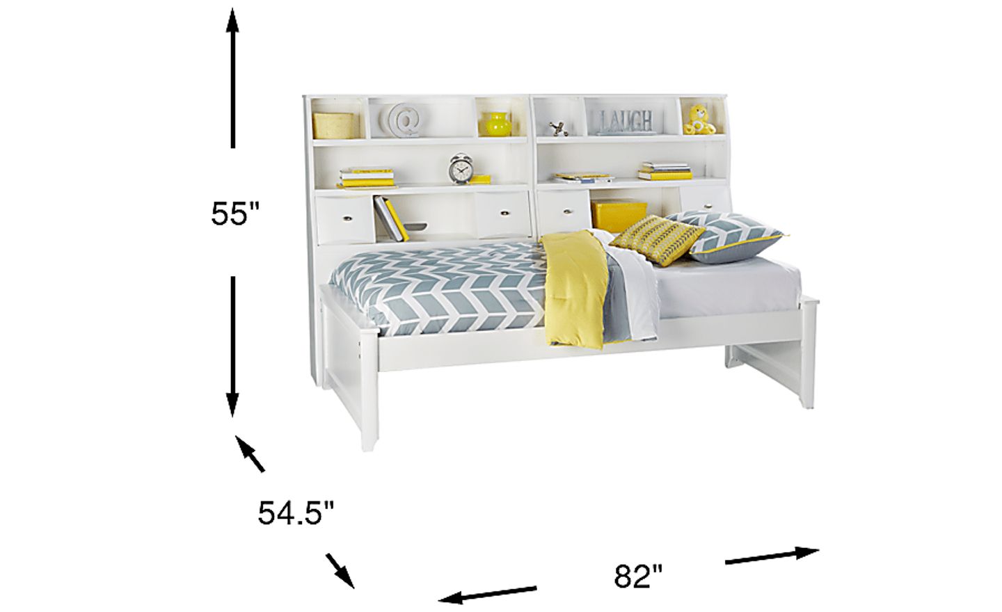 Offering tons of storage, the Ivy League bookcase daybed is a savvy space saver. It features double bookshelves with sliding drawers that can be moved back and forth, as well as open cubbies for books, mementos and more. A handy cutout also allows for easy wire management. The bed is quality crafted of poplar solids in a chic white finish. Plus, be ready for sleepovers in a snap with the trundle drawer (sold separately) - it's a great place to store an extra mattress. Trundle sold separately. Mattress and foundation (if required) sold separately.