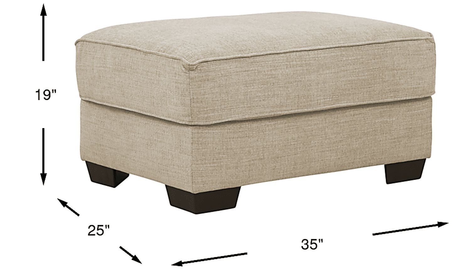 Bringing function and form to your living room, the Ivyleigh ottoman has a simple, straightforward style with plenty of versatility. Perfect when paired with its matching chair as a footrest, as an extra seat for a guest, or even a great place to rest a book or magazine, it anchors your favorite cozy spot. Upholstered in wheat colored woven chenille, it's padded for additional comfort. Upholstery: 100% Polyester.