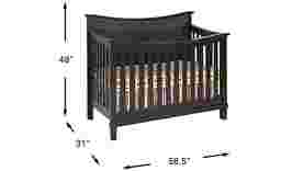 Beautifully crafted and elegantly designed, the Jaclyn Place crib is a sleek focal point for your nursery. Constructed with poplar solids and birch veneers in a chic black finish, it combines modern lines and gentle curves to create a visually stunning piece. Oversized to accommodate your baby's growth spurts, a four point positioning system goes up to 6.5," making it easy to adjust the mattress height for your baby. This crib is JPMA certified and it meets or exceeds all safety standards set by the CPSC and ASTM. Add the toddler rails or conversion rails (both sold separately) to extend this crib's usefulness into their toddler years and beyond! Easily converts to toddler bed with toddler rails as an additional purchase. Easily converts to full bed with conversion rails added as additional purchase. Customer assembly required. Crib mattress and linens not included.