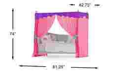 Add an enchanted aura to their room with the Jaclyn Place canopy daybed. Stylish and affordable, this piece boasts a magical appeal your child will love. Perfect for a princess, the pink and purple fabric adds a charmed feel to any space. Made from poplar solids and birch veneers in a beautiful gray finish, it is a modern option perfectly suited for those seeking a stylish, space-saving sleeping solution in a child's bedroom. Add a trundle (sold separately) for even more storage. Mattress and bedding not included.