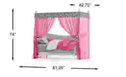Add a touch of royalty to their room with the Jaclyn Place canopy daybed. Perfect for a princess, the pink, zebra fabric adds a regal, enchanted feel to any room. Made from poplar solids and birch veneers in a beautiful gray finish, it is a modern option perfectly suited for those seeking a stylish, space-saving sleeping solution in a child's bedroom. Add a trundle (sold separately) for even more storage. Mattress and bedding not included.