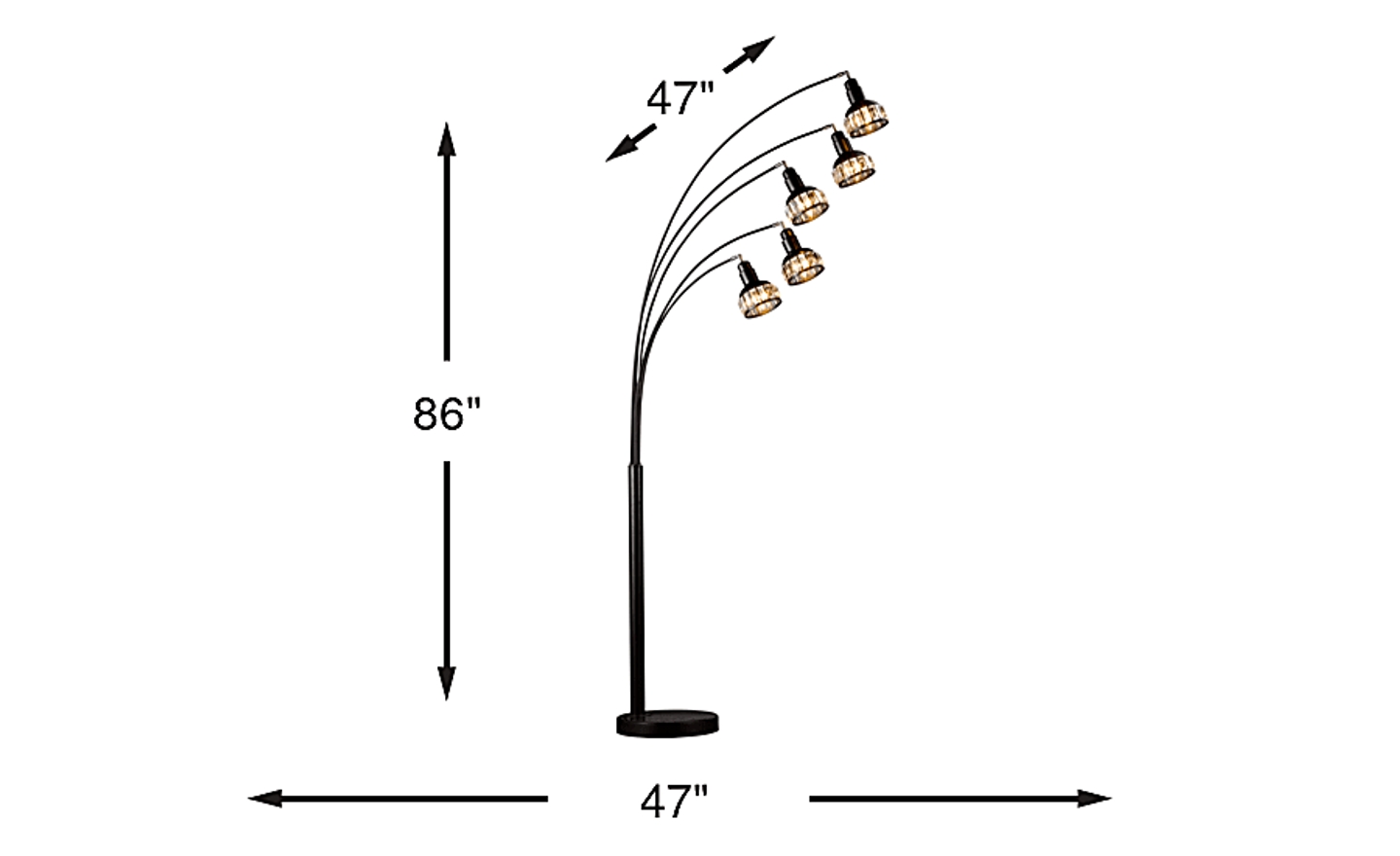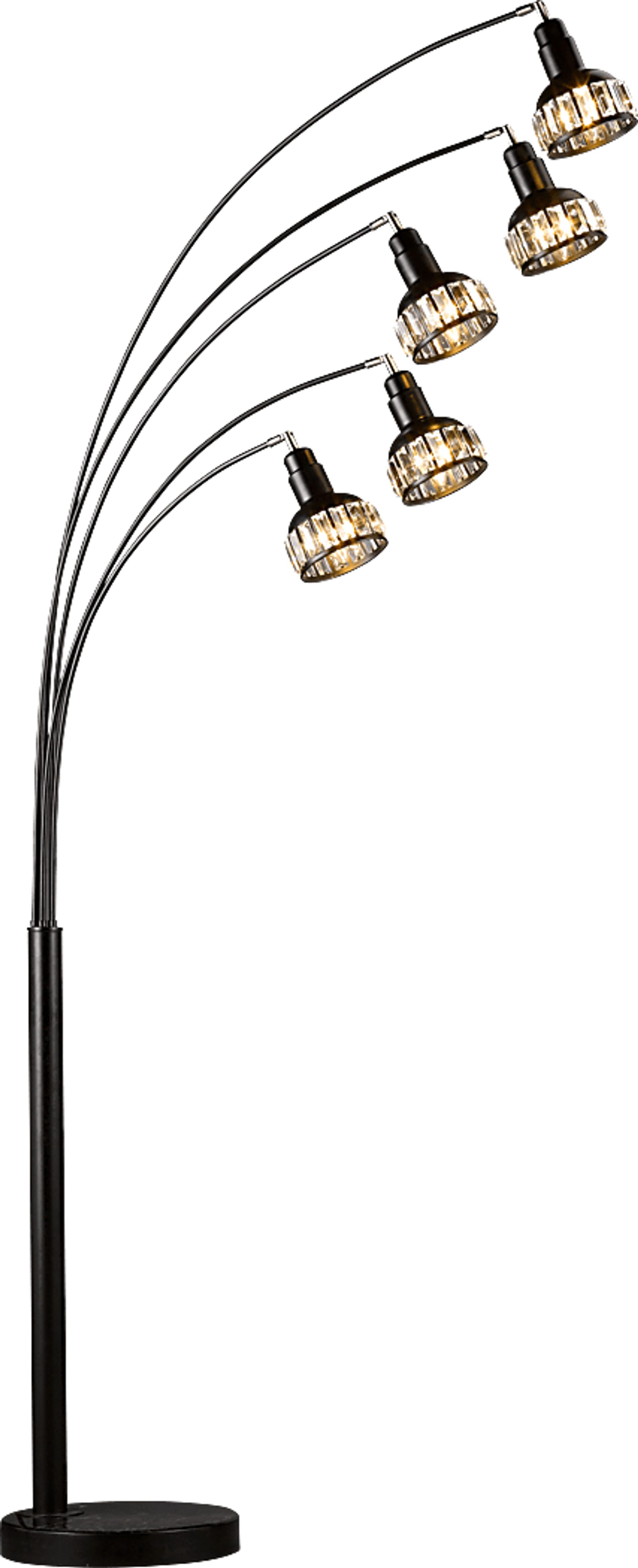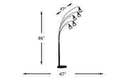 Add eye-catching appeal to your home with the Jacobus Park floor lamp. Modern in appeal, this piece boasts an attractively crafted arc design with a sleek metal base and elongated light fixtures. Its construction ensures durability as the black finish pairs well with existing decor. This lamp features an on and off switch and can accommodate a max 110-120 watt light bulb.