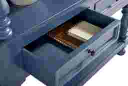 Based on our expertise in fine furniture care, we recommend dusting the navy-blue finish regularly with a soft, dry, lint-free cloth to prevent buildup. For occasional deeper cleaning, use a cloth slightly dampened with water and wipe dry immediately. To protect the integrity of the finish, avoid the use of harsh chemical cleaners or abrasive pads.