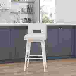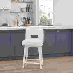 While many modern stools use metal or plastic bases, this stool is built with a solid wood frame and straight legs. Wood is a premium material choice known for its natural durability and long-term resistance to warping. The solid wood construction provides a sturdy, grounded foundation, while the contemporary "keyhole" back style offers aesthetic appeal and back support without adding excessive visual weight to your room.