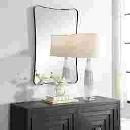 The Jaelah mirror adds a touch of femininity to this otherwise industrial staple by combining a satin black finish to a curvy metal frame surrounding a floating polished edge mirror.
