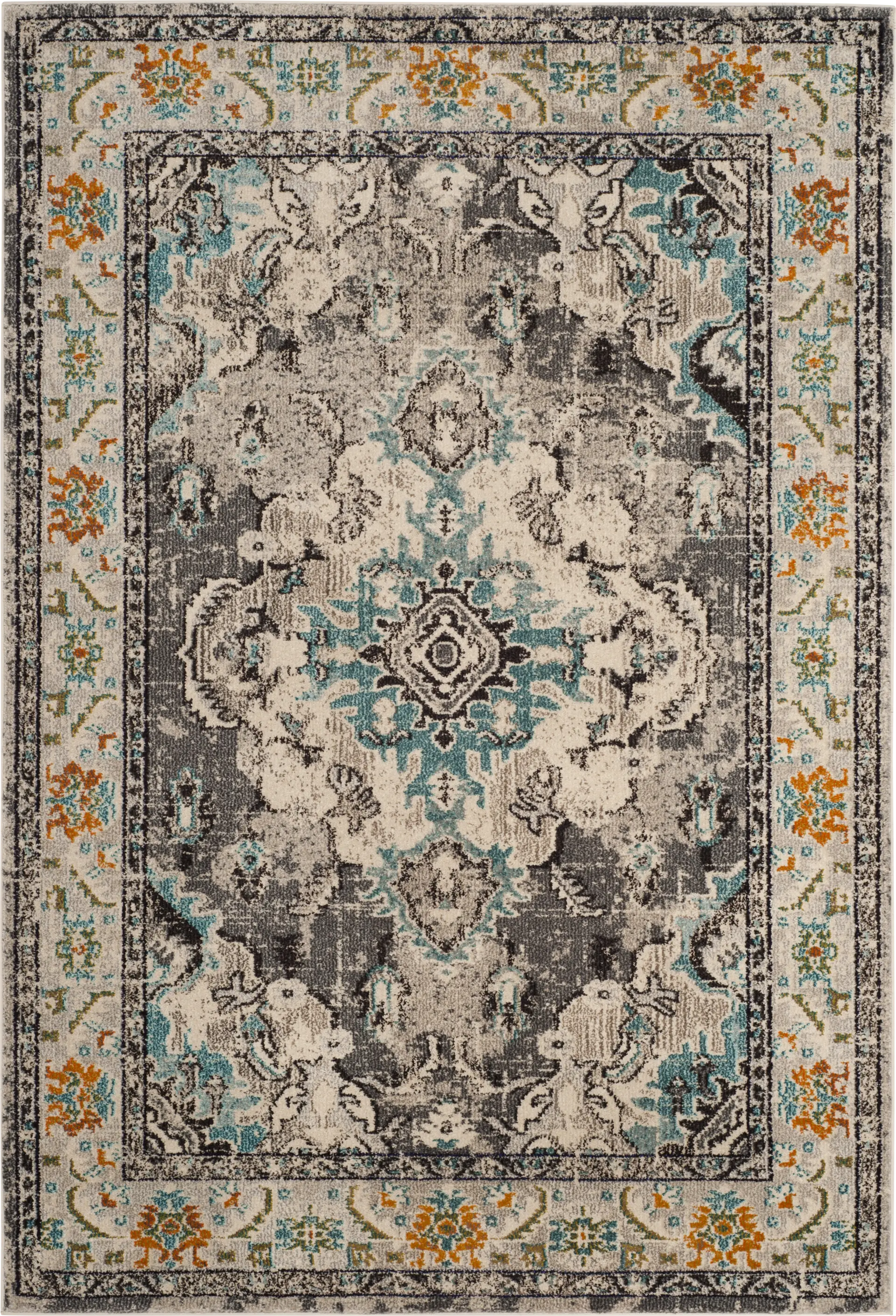 This rug serves as an excellent "bridge" piece for your interior design. The gray base provides a neutral foundation that complements most modern furniture, while the blue and orange motif allows you to pull accent colors for pillows, throws, or wall art. Because of its traditional-meets-contemporary style, it pairs well with both sleek, modern sectionals and more classic wood-toned furniture sets.