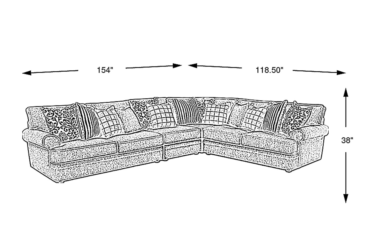 154"w"w x 118.50"d"d x 38"h"h