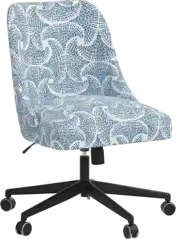 The soft curvature of our Janeran II office chair envelopes the back for incredible comfort. The sleek upholstery and stream-lined shape make it a versatile addition to any office space. Manufactured in the USA, it is both sturdy and cushy, with hand upholstery in a sea fan patterned fabric. This office chair has a 360-degree swivel mechanism that adjusts for height and features metal casters for ease of movement. Customer assembly is required. This piece is made to order and may take up to 6 weeks to deliver.
