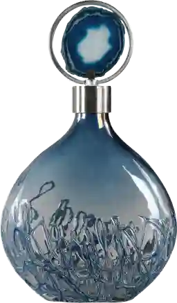 This bottle is an excellent choice for coastal-inspired interiors. The sky blue iridescent glass mimics the reflective quality of water, while the genuine blue agate stone centerpiece provides a natural, organic element reminiscent of shoreline finds. The brushed nickel hardware offers a crisp, clean finish that complements the light and airy palettes often found in coastal or "Florida-style" homes, providing a more sophisticated, modern take on traditional nautical decor.