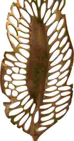 Elevate your space with the stunning Japho gold leaf sculpture. Transform any room with the exquisite elegance of this tall perforated gold leaf sculpture. Featuring a striking design, the solid gold middle frame gives way to delicately perforated, shiny outer sections that appear to naturally flow outward, mimicking the intricate details of a lifelike leaf. The unique, uneven placement of the perforated panels adds a dynamic, artistic touch, creating a sense of movement and organic beauty. Standing gracefully atop a sleek white marble base, this sculpture blends luxurious materials with nature-inspired artistry, making it the perfect statement piece for any modern or contemporary setting. Customer assembly is required.