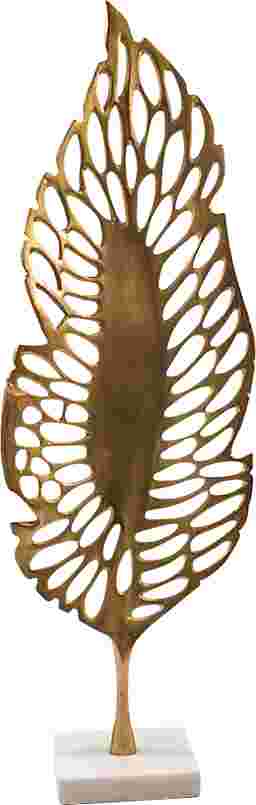 With its clean lines and luxe material palette, this sculpture is a perfect fit for Contemporary, Modern, and Transitional interiors. The "leaf" subject matter introduces an organic, nature-inspired element that can soften the sharp edges of modern furniture. It also works beautifully as a focal point in a Glam-style room, where the gold and marble materials naturally complement metallic accents and high-end finishes.