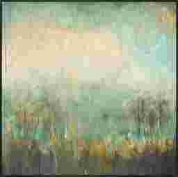 Simply stunning, the Jardin Vert artwork is a medium-to-large sized abstract piece with lovely aqua and gold tones. Covered in a clear acrylic overlay, that features textured details, this piece is framed without glass in a black finished frame.
