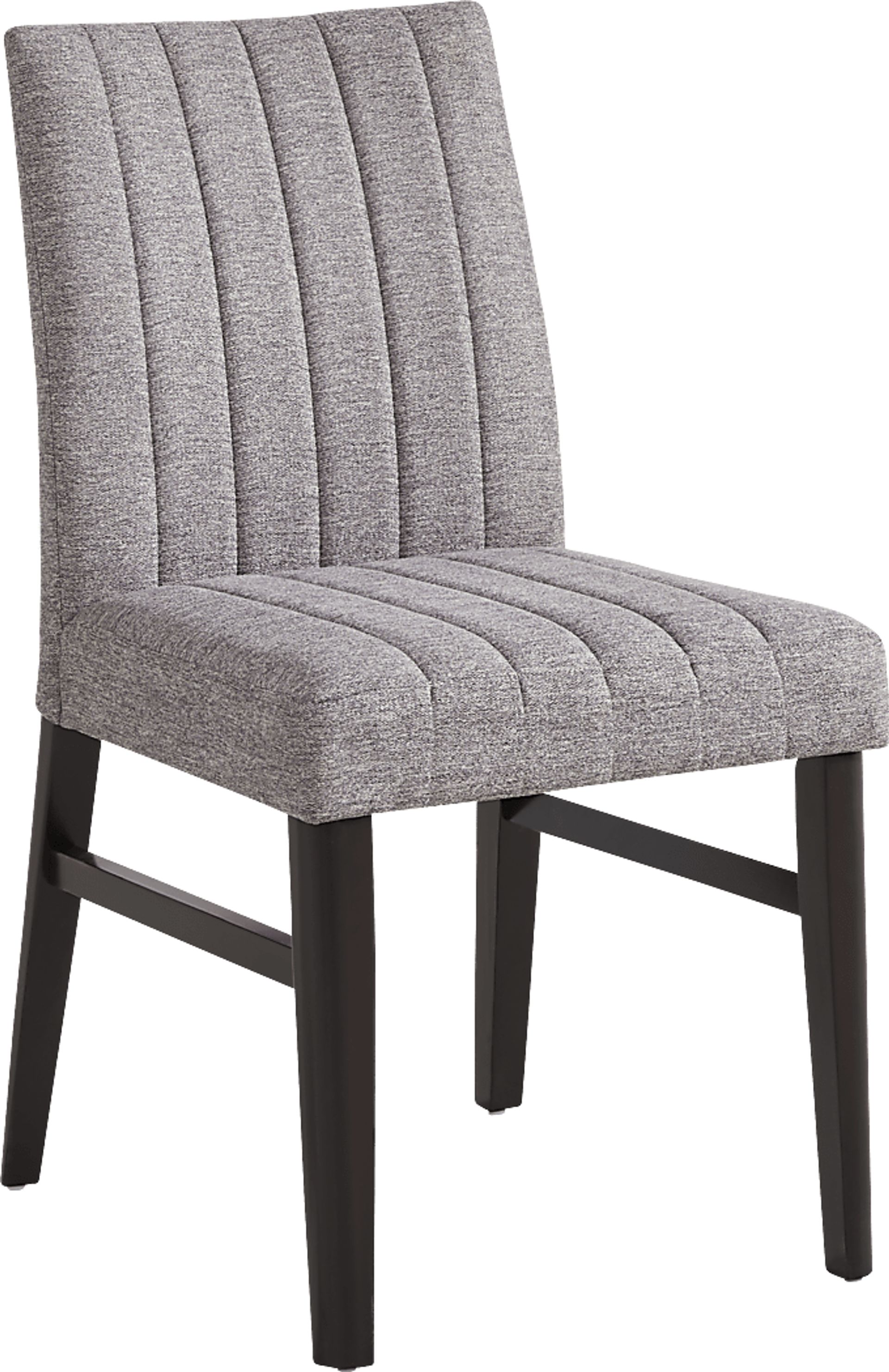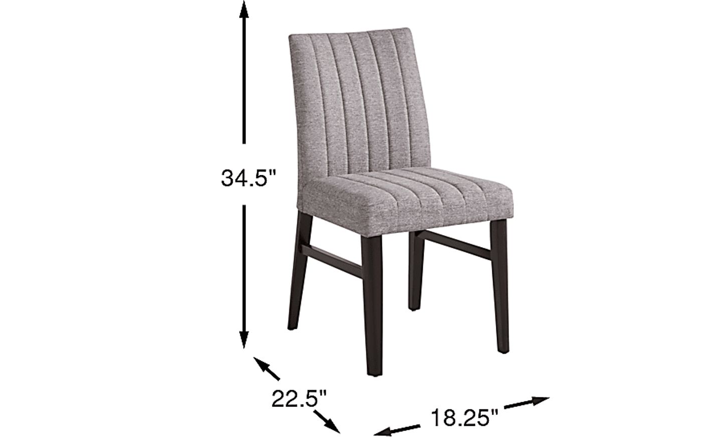 Round out your mealtime look with the Jarvis dining room. Contemporary in style, this upholstered side chair features vertical channeling that runs down the center of the gently sloping backs and spacious seating that emphasizes the fabric's gorgeous gray color. Matching espresso finish on the legs offer the perfect final touch. 100% Polyester