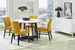 Jarvis White 5 Pc Round Dining Room with Yellow Side Chairs