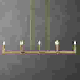 The Jayedn Brass Chandelier is the ultimate expression of modern minimalism-a sleek, linear design that radiates sophistication with effortless grace. Its elongated frame in a warm, brushed gold finish stretches like a horizon of light, punctuated by eight slender candle-style bulbs that glow like stars suspended in perfect symmetry. The clean lines and airy silhouette make it a striking centerpiece, ideal for dining rooms or open spaces where elegance meets contemporary flair. This isn't just a fixture-it's a statement of confidence and style, a piece that transforms any room into a gallery of light and luxury. Professional installation by an electrician is recommended.