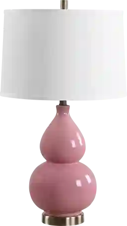 In transitional decor, a bold "pop of color" is a sophisticated way to add energy to a neutral palette. To style a pink table lamp effectively, our designers suggest using it as a statement piece against larger furniture in gray, cream, or taupe. You can create a cohesive look by pulling the pink hue into other small accents, such as patterns in an area rug or decorative pillows. The lamp’s antique brass trim also adds a refined metallic touch that bridges the gap between modern color and traditional form.
