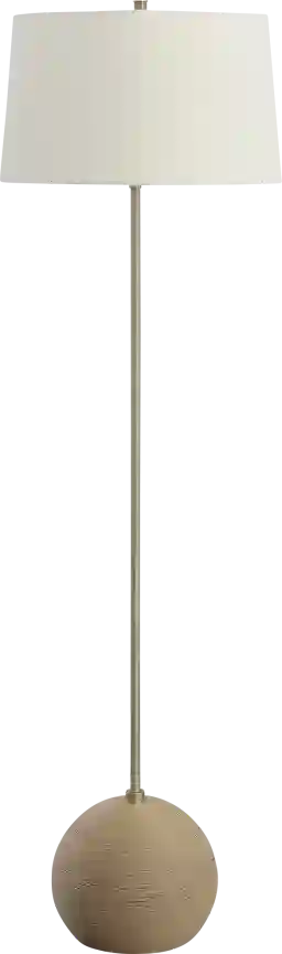The Jaywood Oaks floor lamp features a casual, natural braided rattan wrapped foot accented by antique brass plated iron base. A slightly tapered hardback shade in a crisp white linen fabric complements the piece. Partial assembly may be required.
