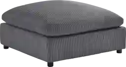 This ottoman is designed for easy maintenance with a removable and reversible cushion. The ability to flip the cushion ensures even wear on the corduroy wales, extending the life of the fabric. For cleaning, the zippered cover can be removed to access the interior; our care guidelines recommend regular vacuuming with an upholstery attachment to remove dust from between the ribs and prompt spot cleaning for any spills to keep the dark gray fabric looking fresh.