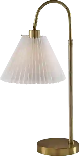 This lamp requires partial assembly. Typically, this involves attaching the shade and securing the socket assembly. The process is straightforward and designed to ensure the lamp arrives safely without damage to the arched pole or the delicate knife-pleated shade. Once assembled, its blend of antique brass and modern lines provides an immediate style upgrade to your room.
