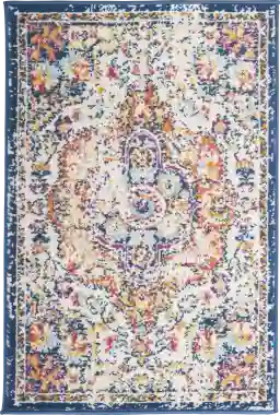Incorporate style and uniqueness into your decor by adding the authentic elegance of the beautiful Jeman rug. This rug features a traditional design with intricate details in multicolored shades like blue, ivory, orange, yellow and purple with a distressed look. This rug provides durable performance and easy care at an amazing value. The use of a non-skid pad is recommended to keep the rug in place on smooth surfaces. Please note, due to polypropylene construction, colors can vary depending on the viewing angle of the rug. Also, due to the difference of monitor colors, some rug colors may vary slightly.