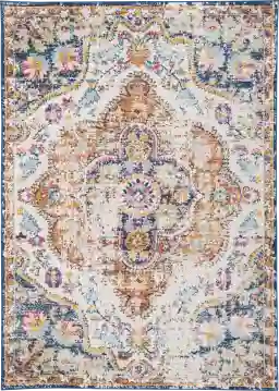 Incorporate style and uniqueness into your decor by adding the authentic elegance of the beautiful Jeman rug. This rug features a traditional design with intricate details in multicolored shades like blue, ivory, orange, yellow and purple with a distressed look. This rug provides durable performance and easy care at an amazing value. The use of a non-skid pad is recommended to keep the rug in place on smooth surfaces. Please note, due to polypropylene construction, colors can vary depending on the viewing angle of the rug. Also, due to the difference of monitor colors, some rug colors may vary slightly.