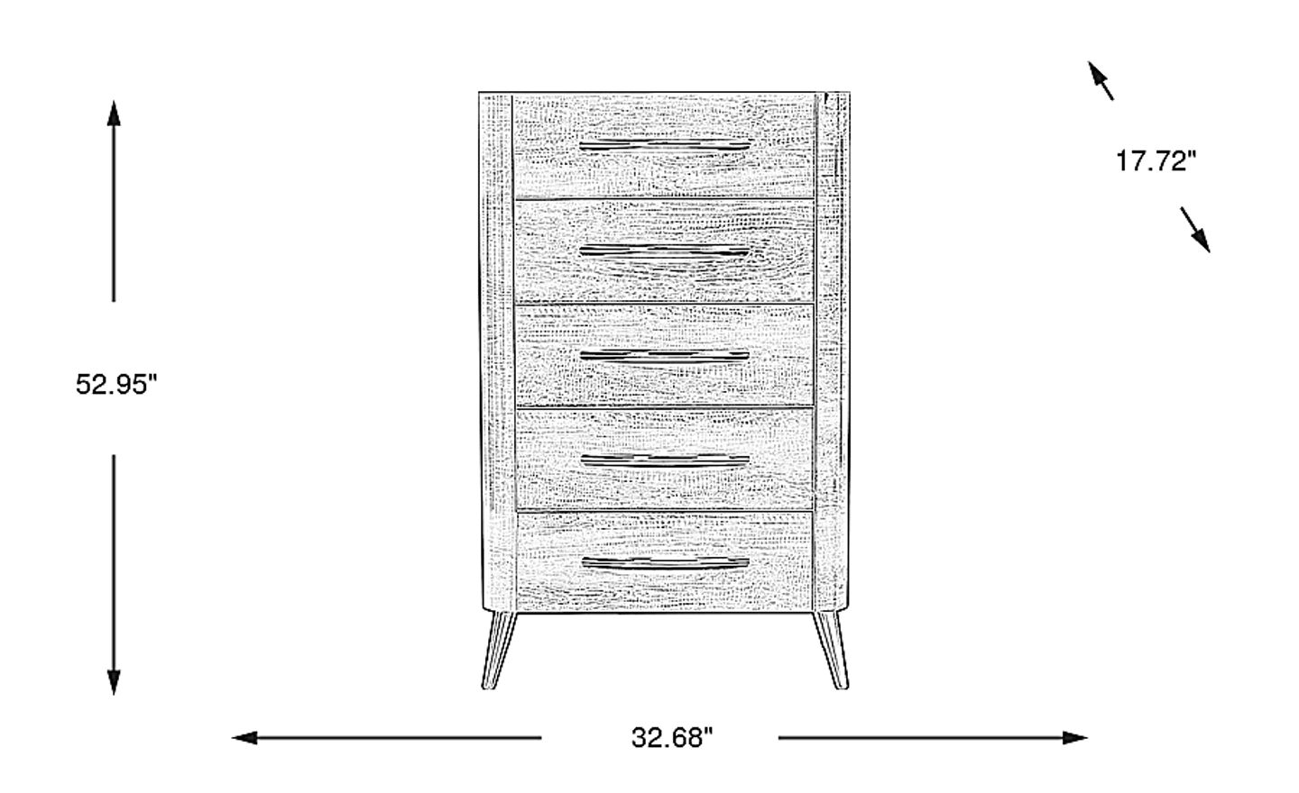 Usher in the ultimate style renaissance with the Jenner storage chest. Featuring a well-rounded appearance with five drawers that are perfect for storing away clothes, extra bed linens and more, this piece's stunning wood grain details are finished in a high gloss walnut color. Under mounted metal drawer glides make opening and closing each case easy. Oversized brushed chrome bar pulls tailor the look with contemporary flair while canted legs offer a timeless quality that never goes out of style.