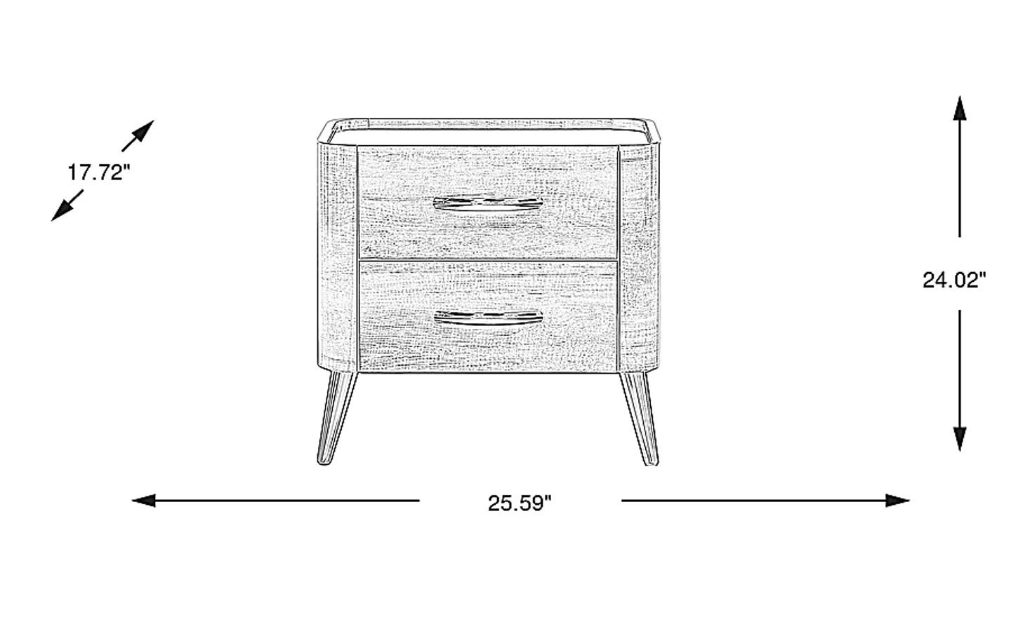 Usher in the ultimate style renaissance with the Jenner nightstand. Offering optimal bedside storage, this piece features a well-rounded appearance with stunning wood grain details finished in a high gloss walnut color. Under mounted metal drawer glides on both of the nightstand's drawers make opening and closing the cases easy. Oversized brushed chrome bar pulls tailor the look with contemporary flair while canted legs offer a timeless quality that never goes out of style.