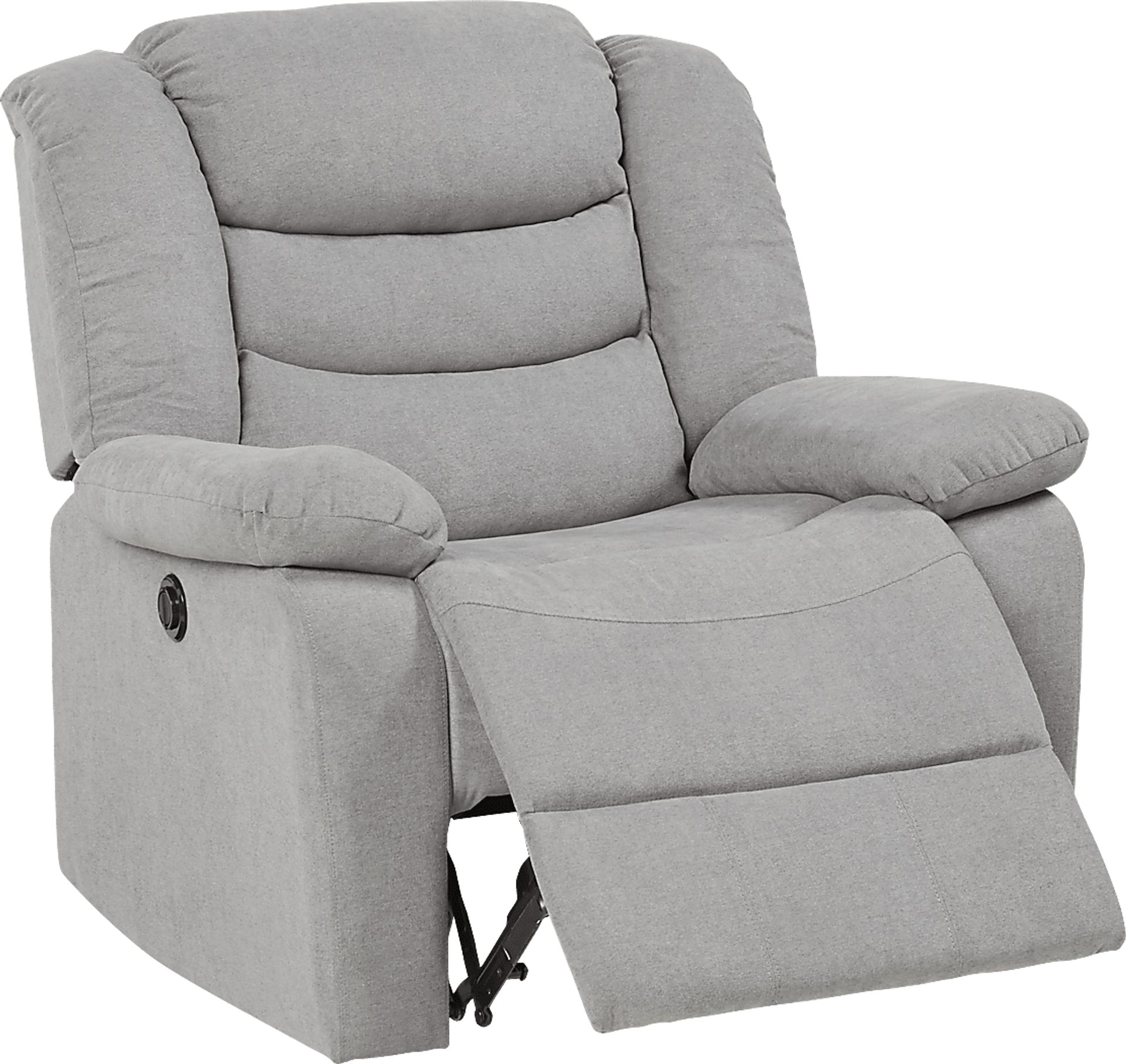 Lean back in comfort with the cozy design of the Jensen Beach power recliner. Upholstered in soft and durable gray colored fabric, this deluxe recliner is decked out with plenty of relaxation inducing features. A padded chaise reclining footrest, pillowtop arms and deep bucket seat combine to create an indulgently sumptuous seating experience. Plus, with power reclining capabilities, finding the ideal position is as easy as touching a button. 100% Polyester