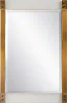 The Jesko mirror features stainless steel sides finished in a plated brass, anchoring thick acrylic bands. Mirror has a 1 bevel and may be hung horizontal or vertical. Customer assembly is required.