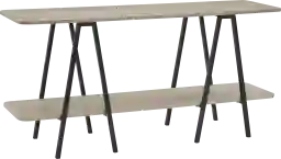 The Jessee I light brown sofa table takes your living room style up a notch and impresses guests by adding visual interest to your space. With its two-tiered design and steel legs, it easily blends into a modern contemporary space and slides behind a sofa or sits in an entryway, making it both a stylish and functional addition. Add a tray for keys, a lamp, framed family photos up top, and your favorite coffee table books or decorative accents to make it your own. Customer assembly is required.