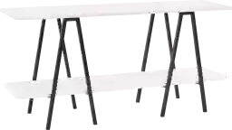 The Jessee I white sofa table takes your living room style up a notch and impresses guests by adding visual interest to your space. With its two-tiered design and steel legs, it easily blends into a modern contemporary space and slides behind a sofa or sits in an entryway, making it both a stylish and functional addition. Add a tray for keys, a lamp, framed family photos up top, and your favorite coffee table books or decorative accents to make it your own. Customer assembly is required.