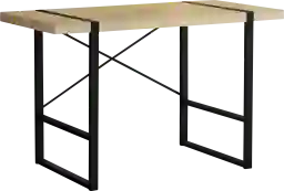 This stylish industrial inspired Jetton computer desk could easily pass for an accent table. It features a spacious, thick-panel desktop finished in a natural wood-look laminate and sturdy metal legs in a contrasting black finish. The metallic components are put on full display with rectangular legs integrated into the desktop and an exposed support bar in an attractive X shape on the back of the desk. If you use a living room or bedroom as a home office and are looking for a streamlined alternative to traditional desks, this laptop or writing table gets the job done. Customer assembly is required.