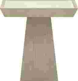 A study in contrast and precision, the Jetweels brown end table brings crisp geometry and calming texture to your space. The creamy top sits above a gray-brown ash veneer base with tapered angles and sharp lines, while cerused grain adds a soft finish that feels grounded and refined.