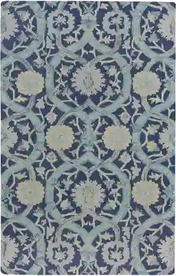 This rug uses a stylized mosaic pattern and traditional motifs to add a sense of timeless elegance to a space. Darker tones like navy and blue provide a grounded feel and are excellent at disguising minor wear in active homes. Pairing a patterned rug with neutral-colored furniture—such as a gray or cream sofa—creates a sophisticated focal point that adds depth and character without overwhelming the room.