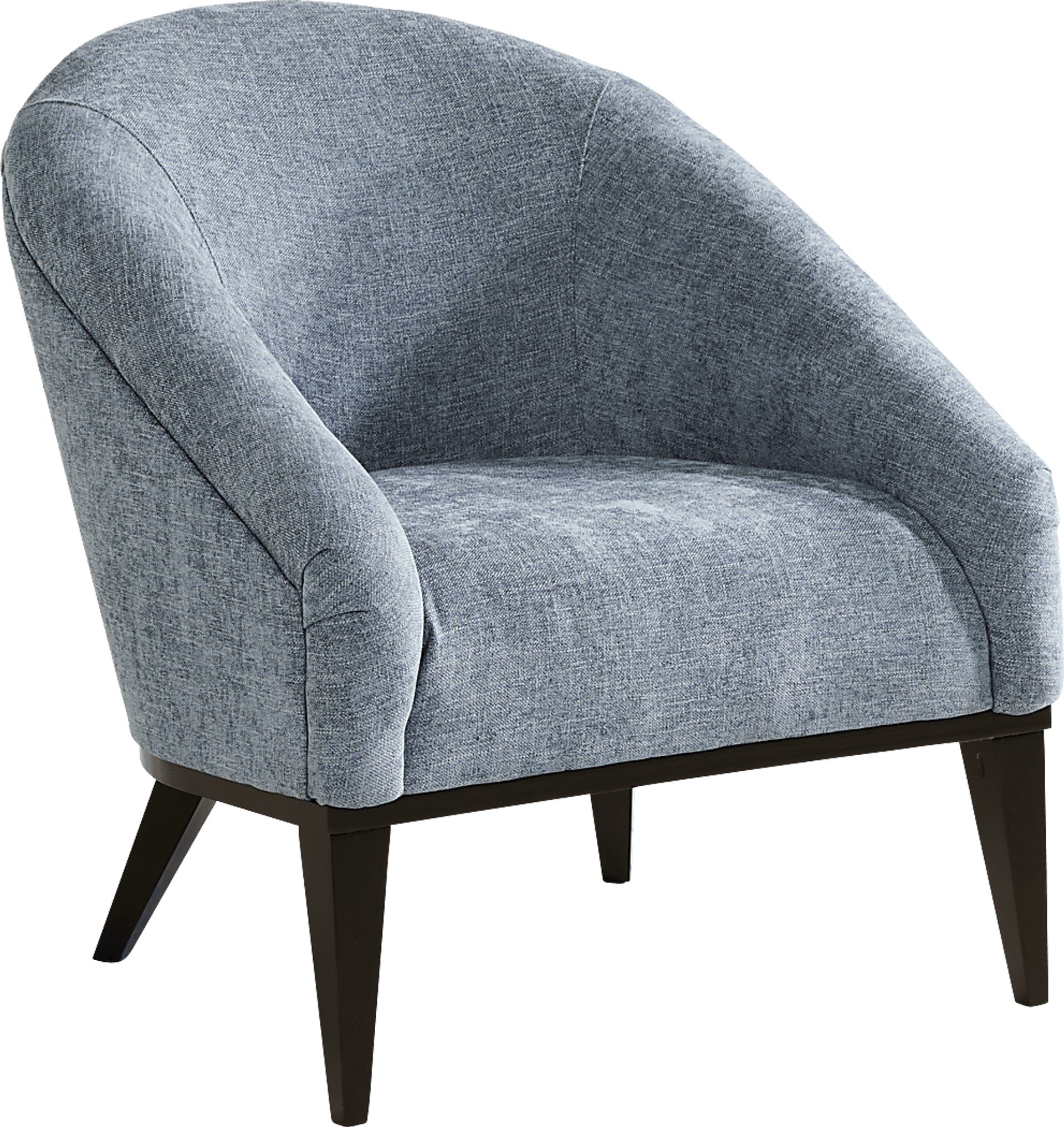 Add a splash of color to any space with the stylish Jolie accent chair. Upholstered in soft chenille fabric, this piece comes in a chambray blue color that blends well with many furniture styles. A dark-finished wood base and tall tapered legs complete the look. Upholstery: 100% Polyester.