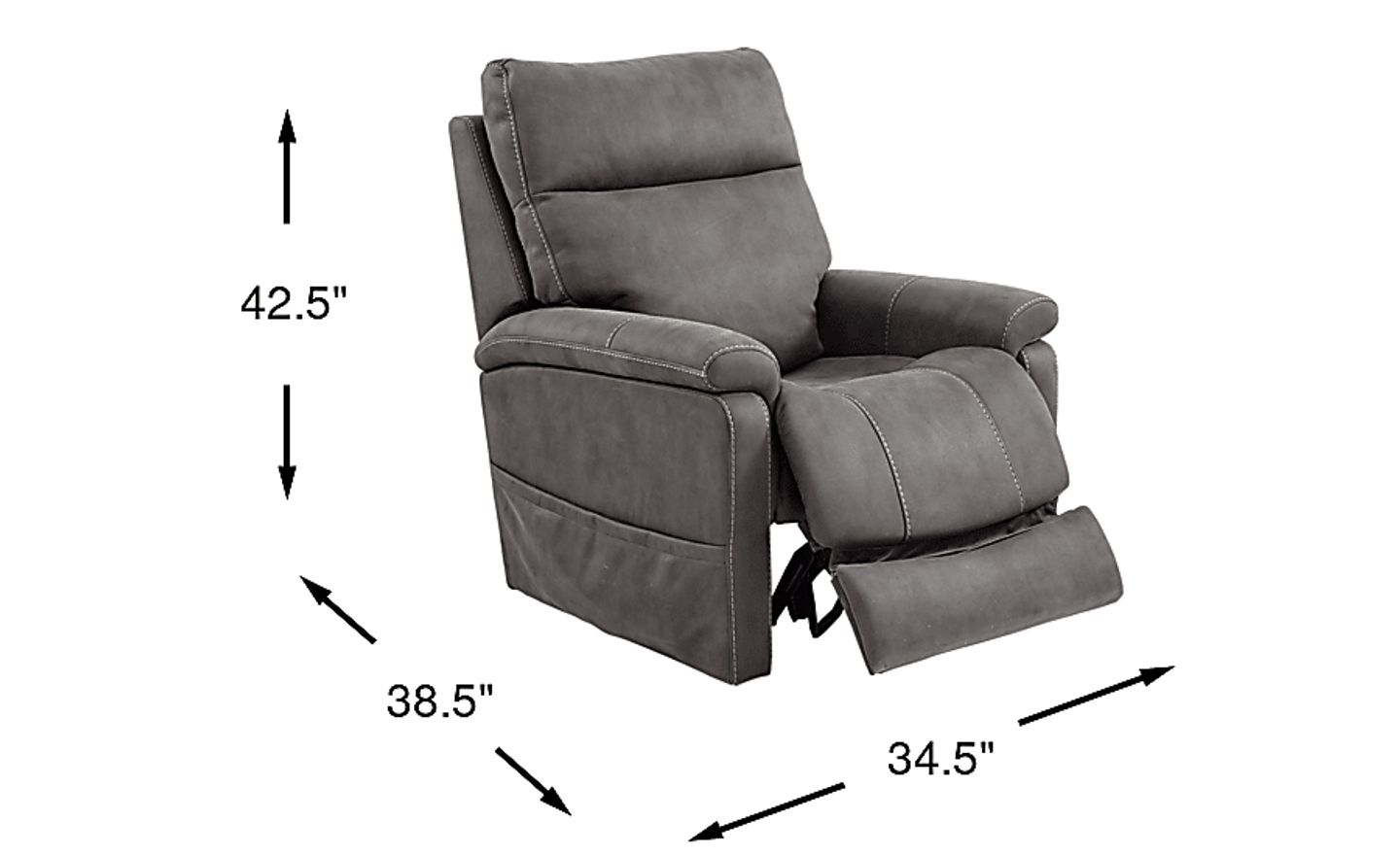 Find comfort and style with the Jonah Way power recliner. Featuring a soft, gunmetal colored fabric and reclining at the push of a button with the USB hand wand, this chair was designed with your relaxation in mind. The lift capability of this chair also makes getting up a breeze. 100% Polyester